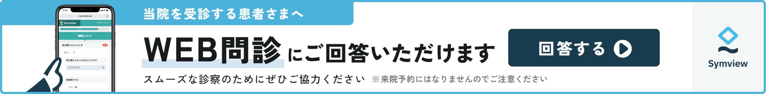 - WEB問診に記入して来院いただくと診療がスムーズです。WEB問診票